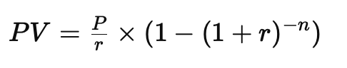 Where:- P = Payment amount you’ll receive per period (monthly, yearly, etc.)