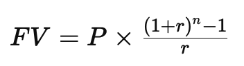 This formula allows you to calculate how your regular contributions will grow over time, considering the interest they earn. It’s useful for understanding the potential future financial outcome of your annuity and helps in making informed decisions about long-term investments.