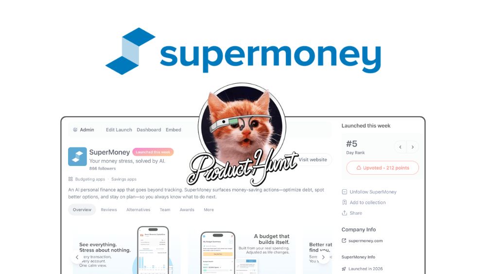 The SuperMoney app launched on Product Hunt on March 3, 2026 and landed the #5 spot on the daily leaderboard. The app was featured in the Product Hunt daily newsletter the following morning. Here’s the story behind the launch, what the app does, and how to try it free.