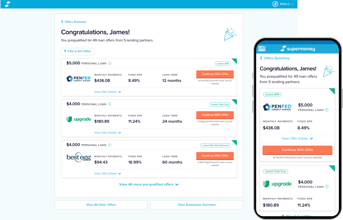 Tap into SuperMoney’s extensive network of dozens of leading online lenders to provide additional loan options - above or below your underwriting model - to your applicants.